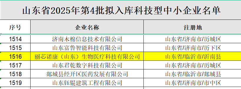 近日,山东省科学技术厅发布了“山东省2025年第4批拟入库科技型中小企业名单”。作为中国医药物资协会常务理事单位苏州丽纳芯生物科技有限公司的全资子公司,丽芯诺康(山东)生物医疗科技有限公司成功入选。